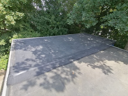 Een week daarvoor waren de dakdekkers alvast het dak op gegaan om de grootste rotzooi zoals takken, verteerd blad, alg-aanslag en restafval te verwijderen. Helaas was dit verre van voldoende om nieuwe dakbedekking aan te kunnen brengen, want die vereist -om te kunnen plakken- een schone ondergrond. Dat betekende het dak vochtig maken en handmatig cm voor cm schoonmaken. Het was al ruim over het middaguur voordat het trio het dak zo schoon had dat ze het met een brander konden droogblazen.